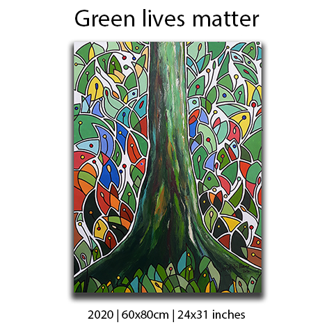 Produz obras figurativas e abstratas, geralmente em tela, onde as cores dominam o visual. No figurativo, busca na simplicidade dos traços retratar o comportamento contemporâneo e as ações de preservação; enquanto em abstratos, tenta expressar conexões entre cores com formas orgânicas.